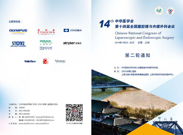 我公司將于2014年7月24日-7月26日作為主要贊助商之一參加在蘭州舉行的中華醫學會第14屆全國腹腔鏡與內鏡外科會議,屆時我司將在會場設立特裝展臺。公司熱忱歡迎業內同道到訪參觀并進行技術交流。